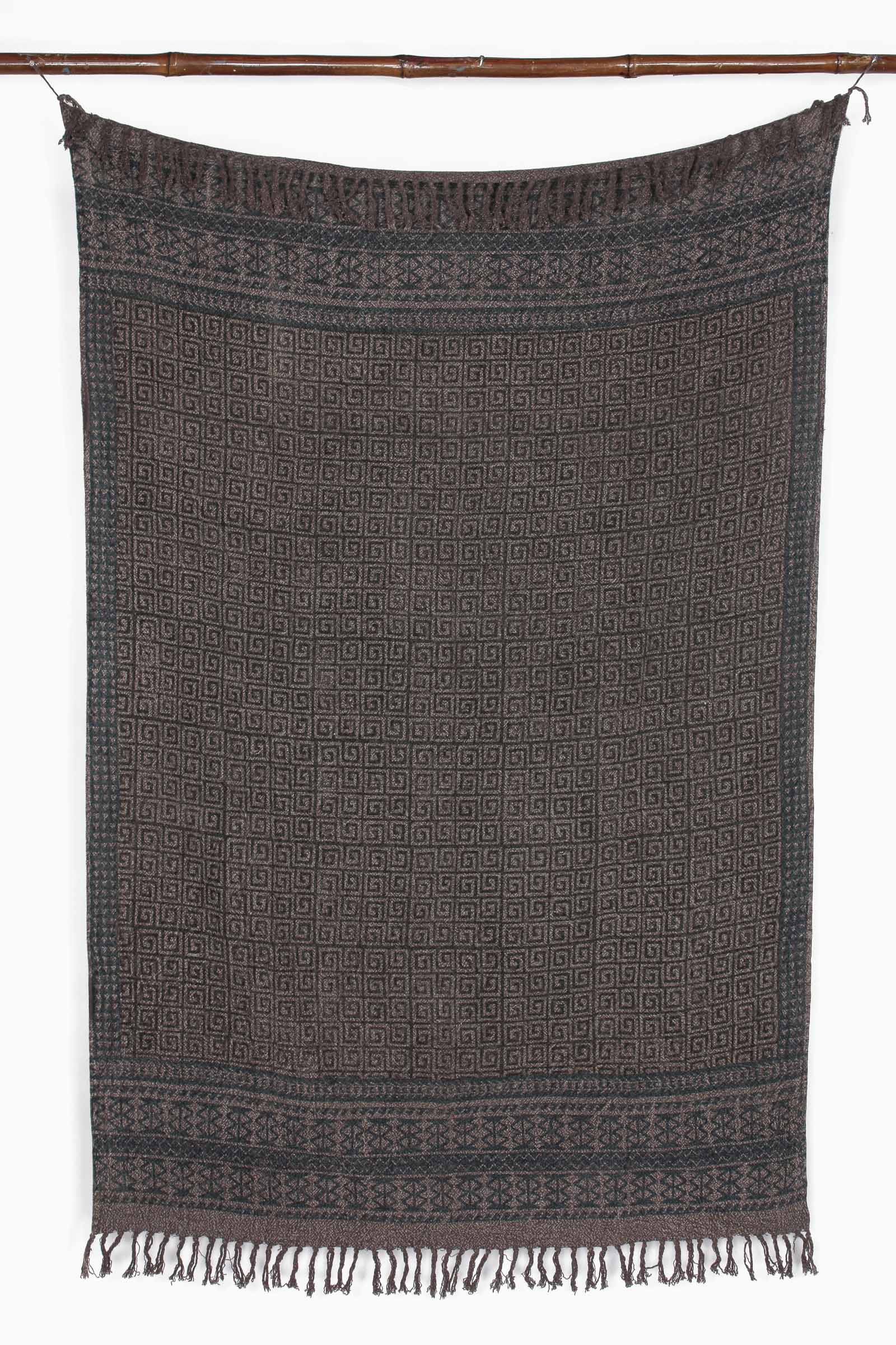 Плед из 100% хлопка с ручным блоковым принтом и бахромой по краям.
