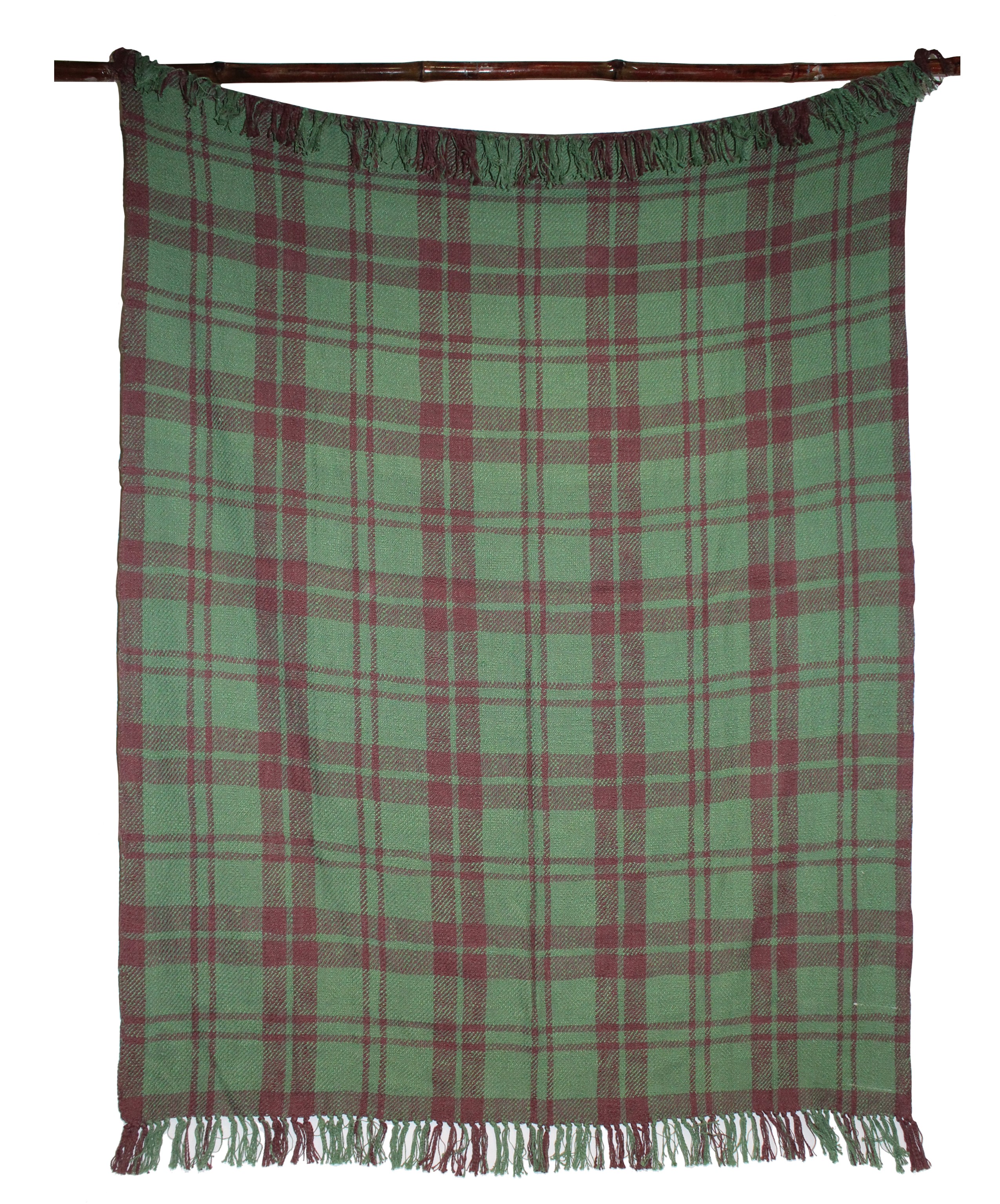 Плед из 100% хлопка с плетеной поверхностью и бахромой по краям.