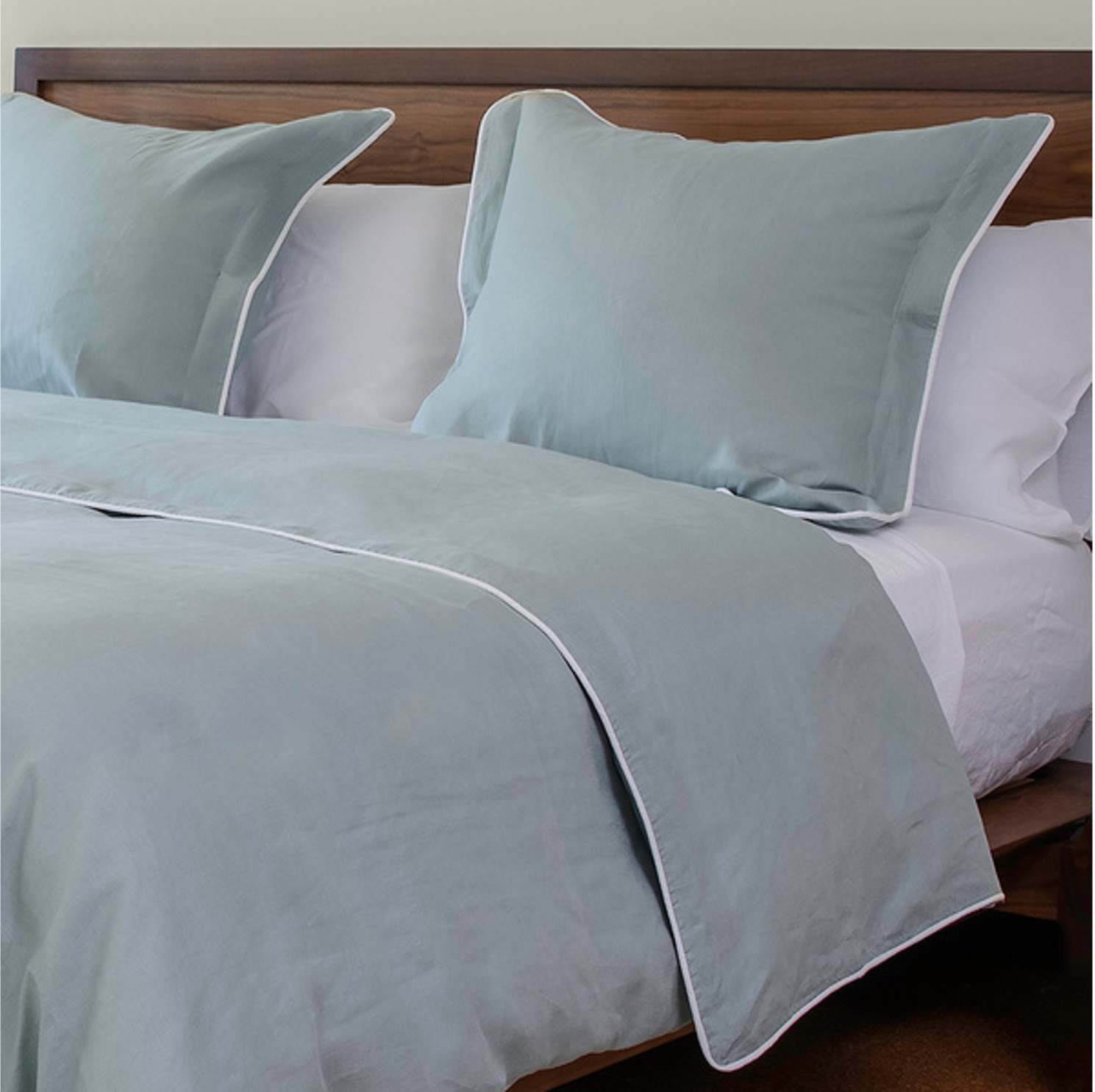 Комплект пододеяльник с наволочками из хлопка однотонный с кантом из шнура