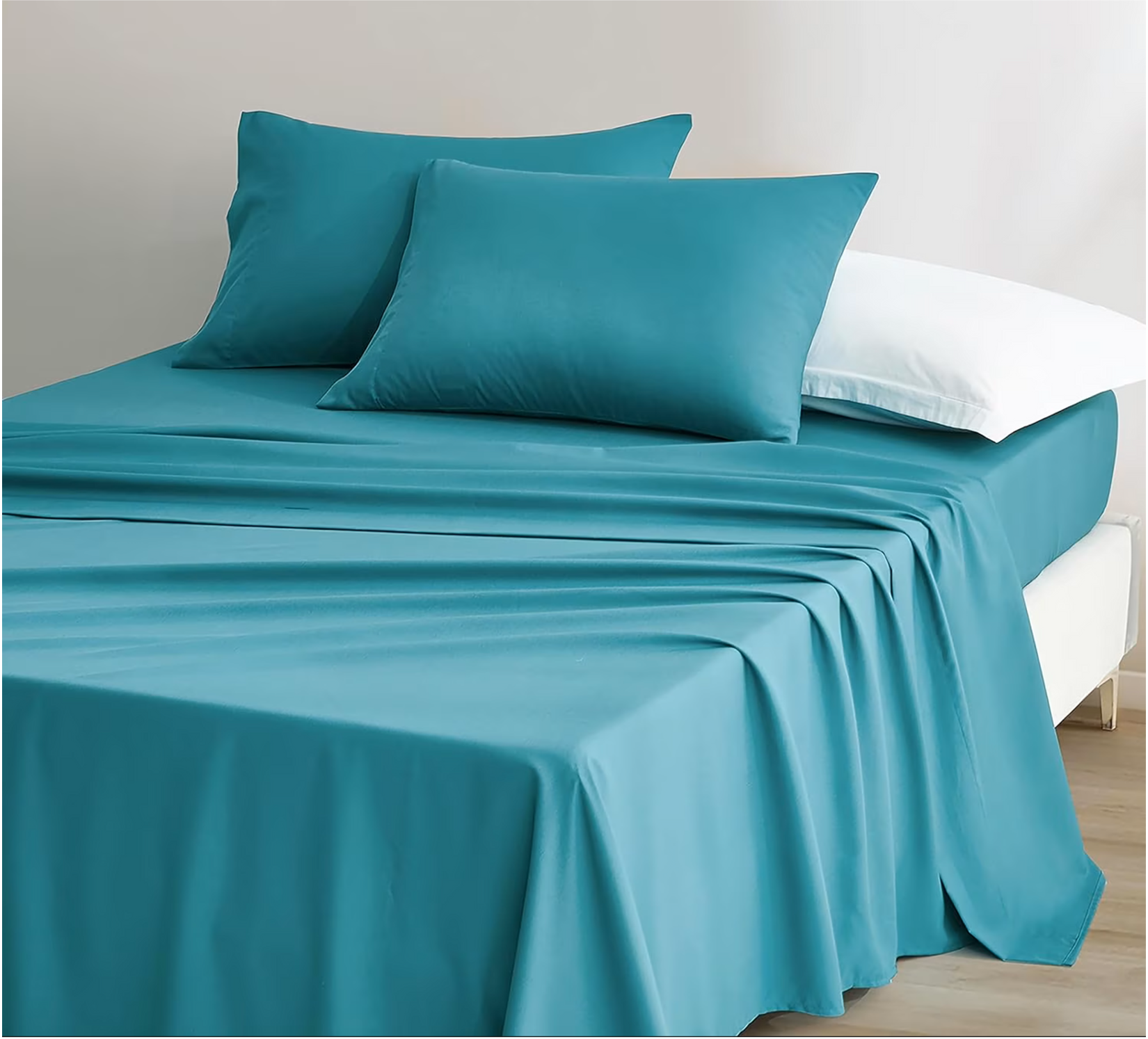 Комплект простыней с наволочками из 100% хлопка с однотонным дизайном. Плотность ткани 126 г/м² обеспечивает комфорт и износостойкость.