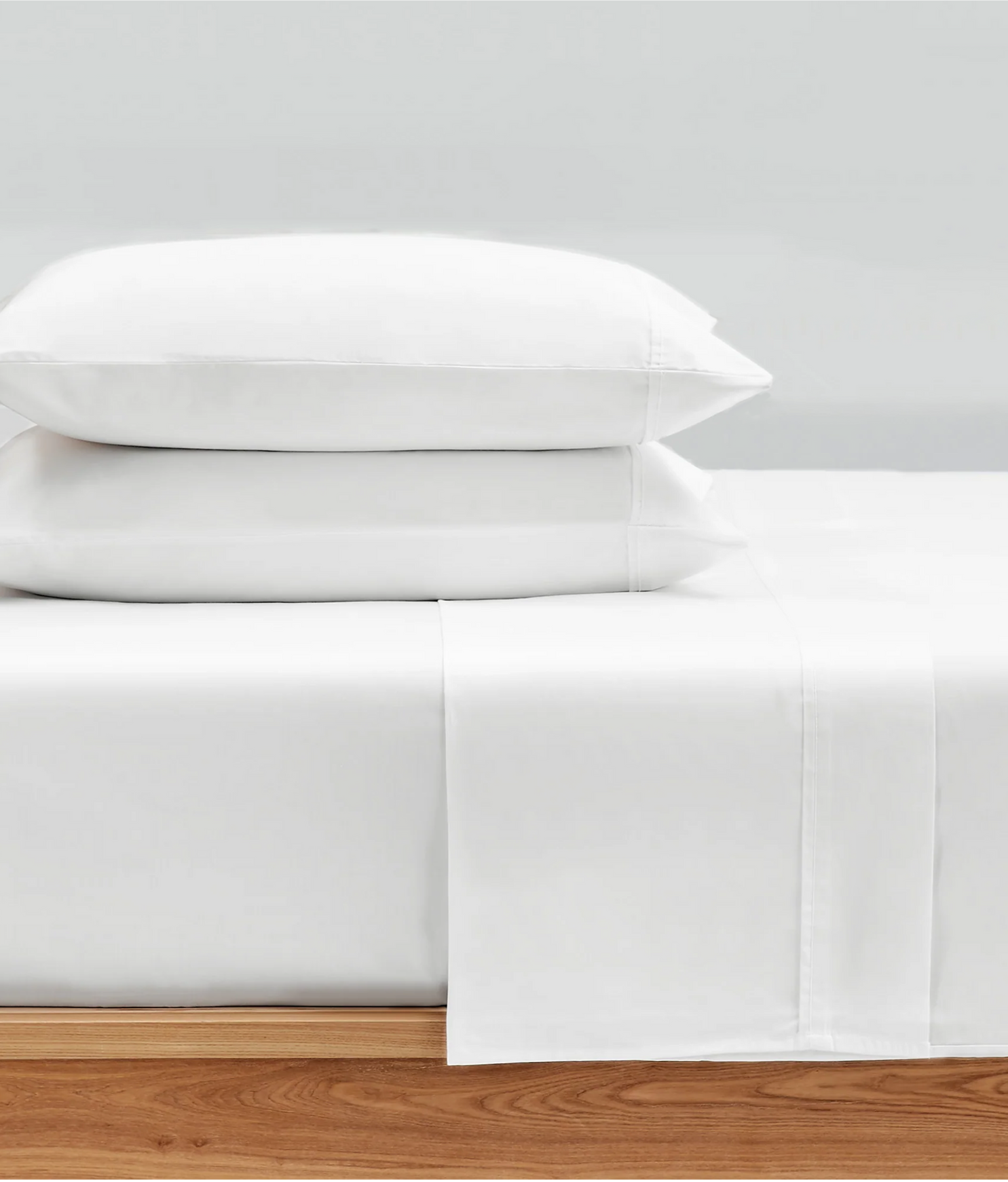 Комплект простыней с наволочками из 100% хлопка с однотонным оформлением. Плотность ткани 126 г/м² подходит для ежедневного использования.