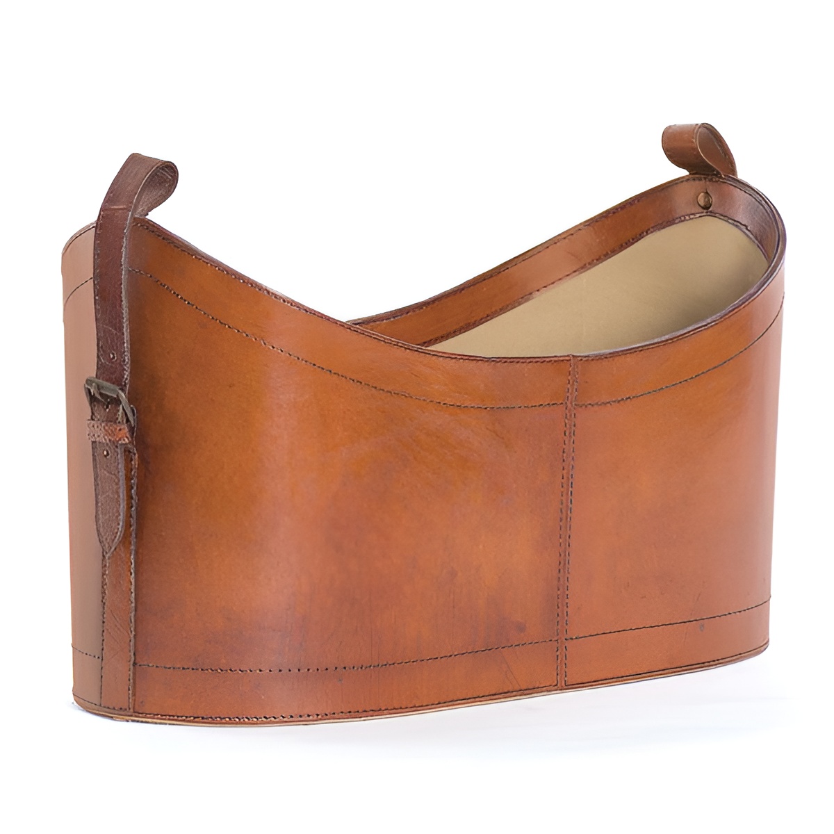 Корзина с отделкой из кожи и бархатными элементами. Сочетание материалов придаёт изделию современный вид и функциональность.
