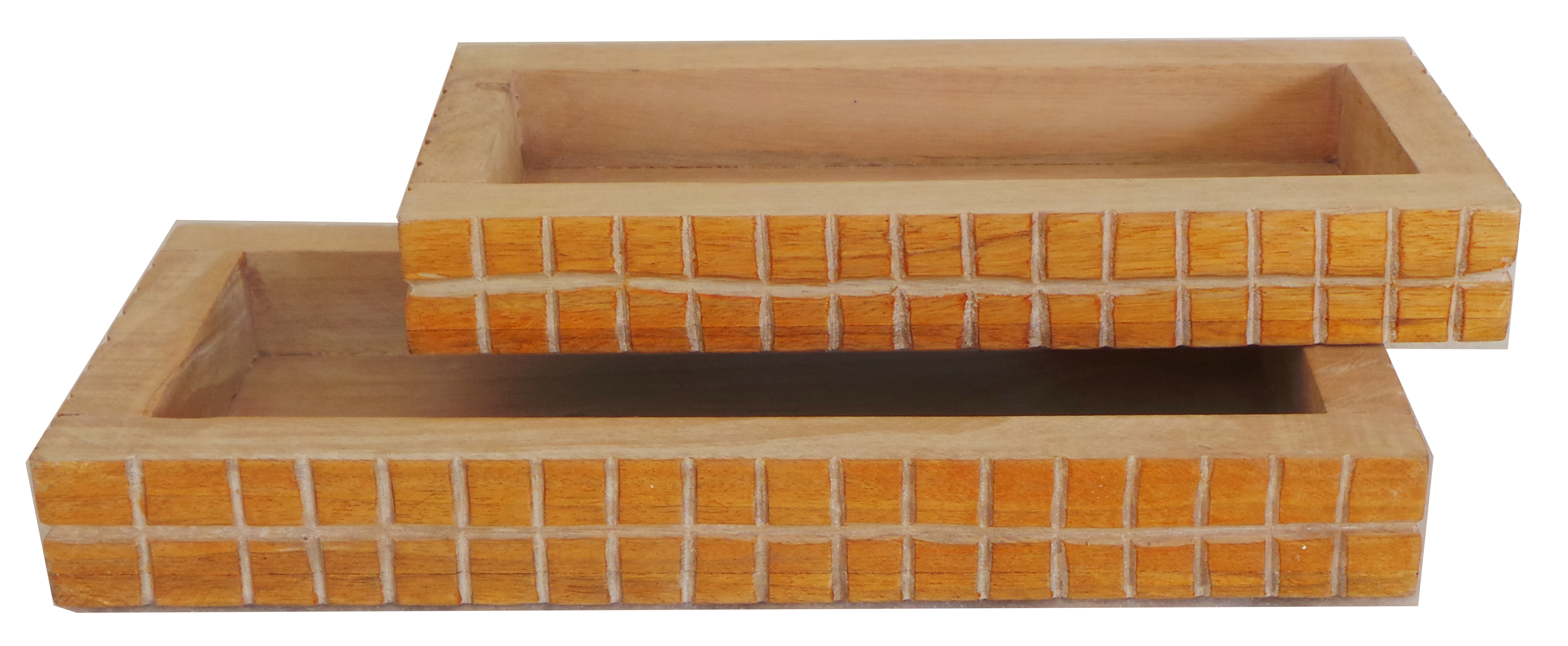 Набор из двух подносов изготовлен вручную из массива манго, отличается натуральным оттенком. Предназначен для удобной подачи и организации.