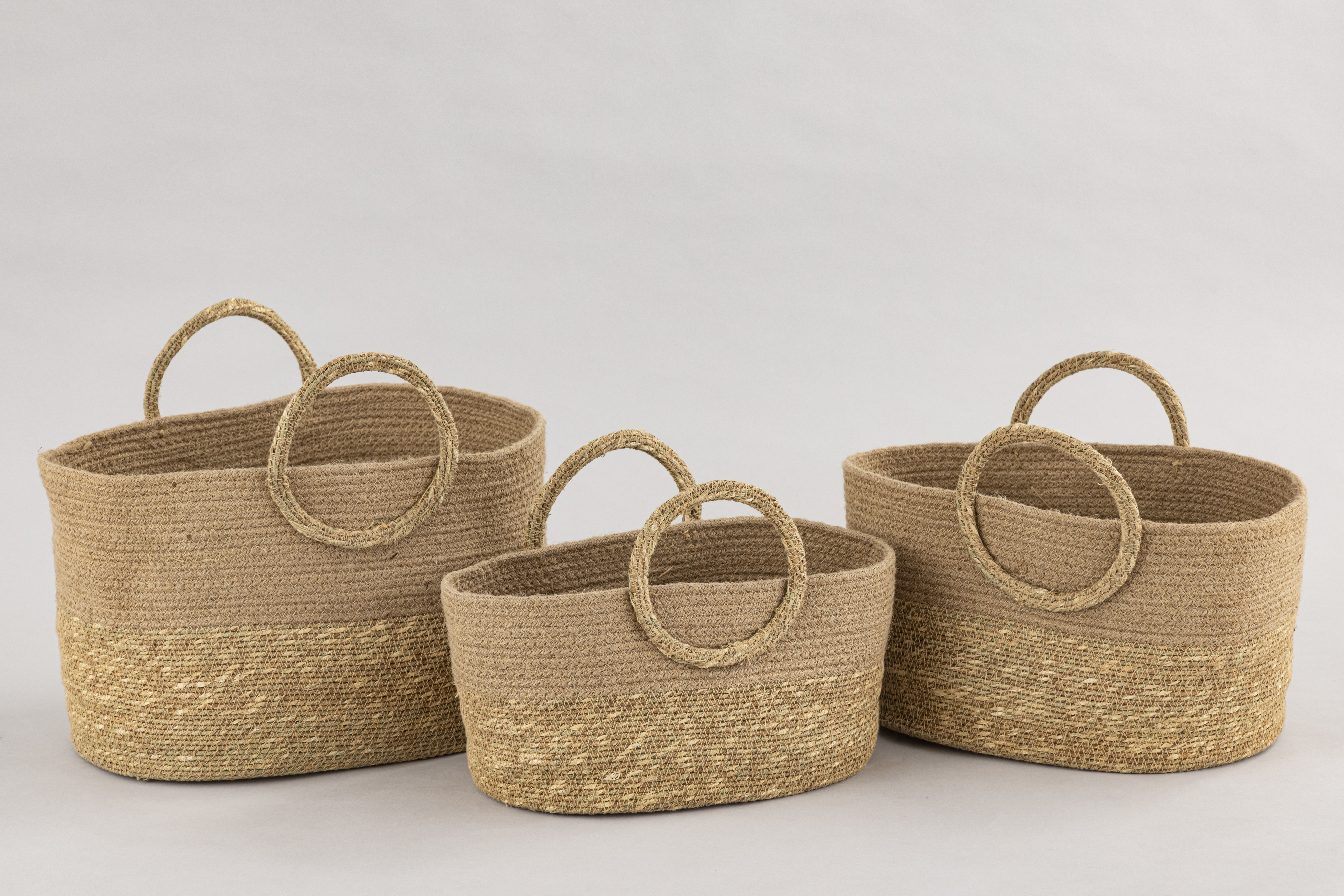 Набор корзин для хранения из хлопкового шнура с ручками из водорослей из морской травы