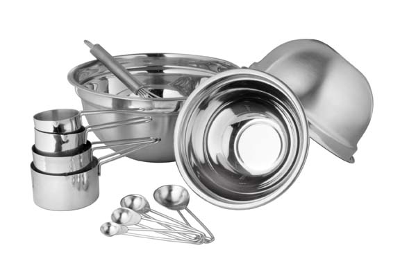 Набор мерных инструментов выполнен из нержавеющей стали с полированной поверхностью. Прочный материал и легкость ухода.