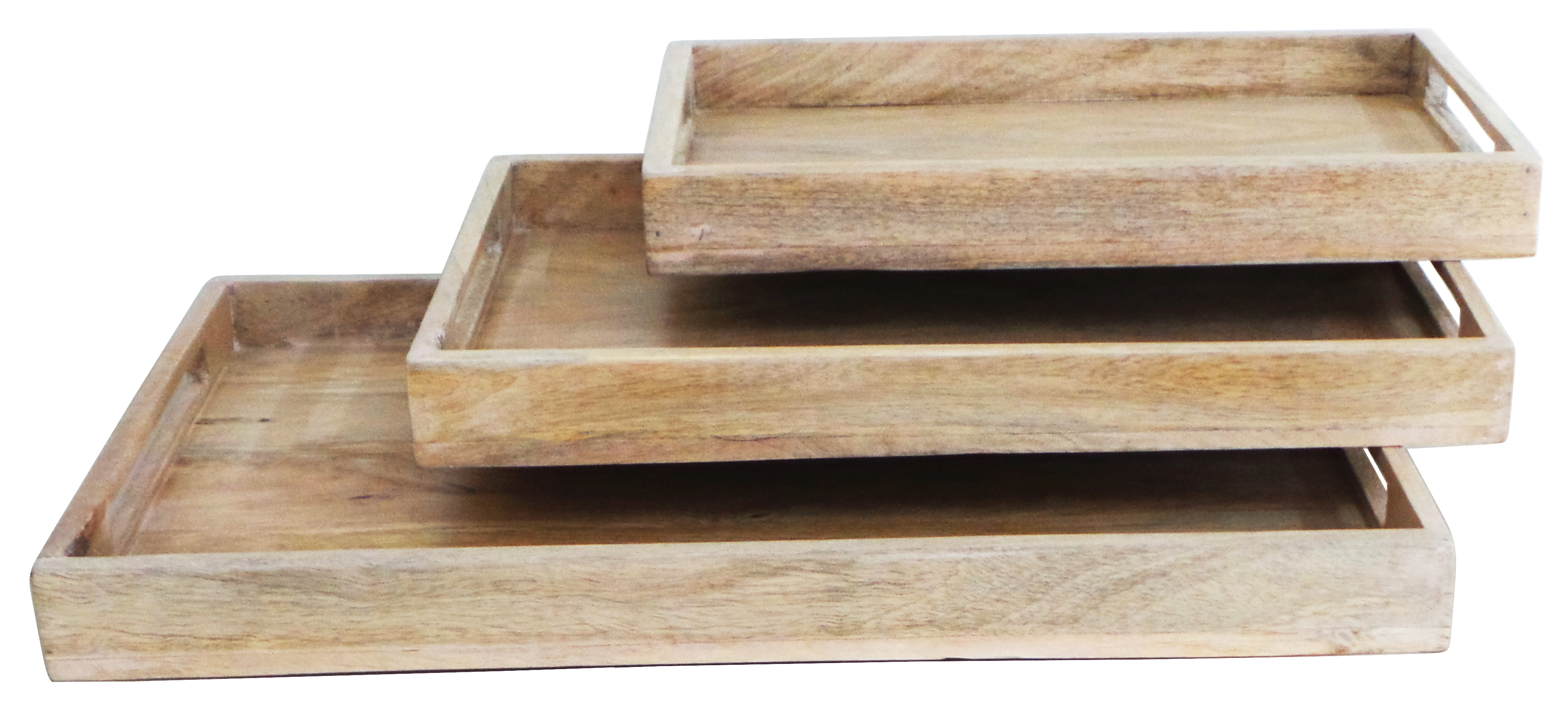 Набор из трёх подносов из массива манго выделяется ручной работой и естественным оттенком дерева. Прочные изделия подходят для сервировки и оформления интерьера.