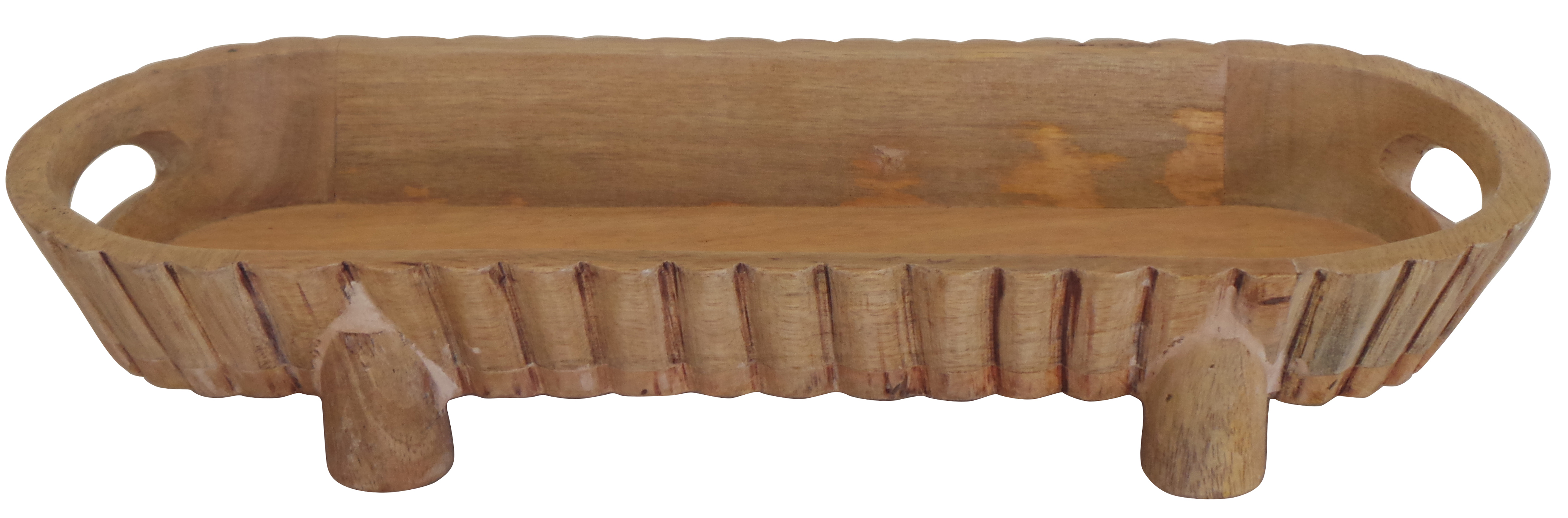 Поднос на ножках выполнен из массива манго, изготовлен вручную и имеет натуральный оттенок. Предназначен для удобной подачи разных блюд.