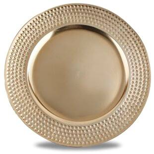 Сервировочная тарелка из нержавеющей стали с тисненым краем и матовым золотым покрытием, диаметр 33 см. Обеспечивает эффектную сервировку и долговечность.
