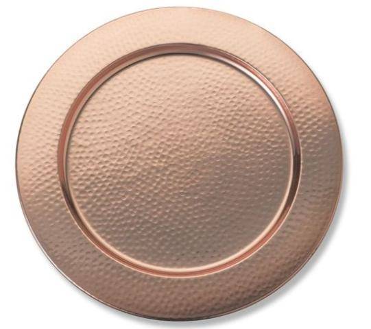 Сервировочная тарелка из нержавеющей стали с тиснением и покрытием под медь, диаметр 33 см. Прочное и стильное решение для сервировки.