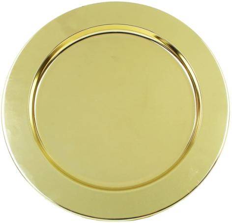 Сервировочная тарелка из нержавеющей стали с покрытием под золото, диаметр 33 см. Прочный и элегантный элемент сервировки.